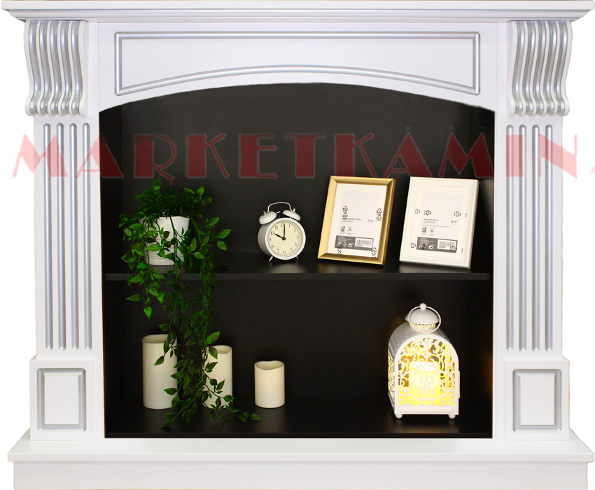 Центральную часть камина занимает открытая ниша с полкой. Ниша может быть черного цвета (на фото) или любого цвета на выбор, в том числе в цвет камина.