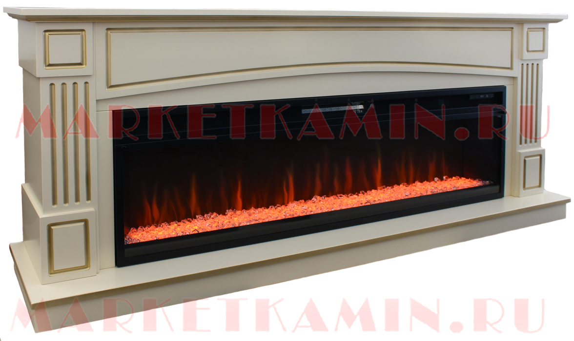 Бельгия (слоновая кость с золотом) Очаги 60″ на выбор (дрова/кристаллы/3D с живым пламенем) Цвет на выбор. Габариты (ШxВxГ)1900x760x350 мм