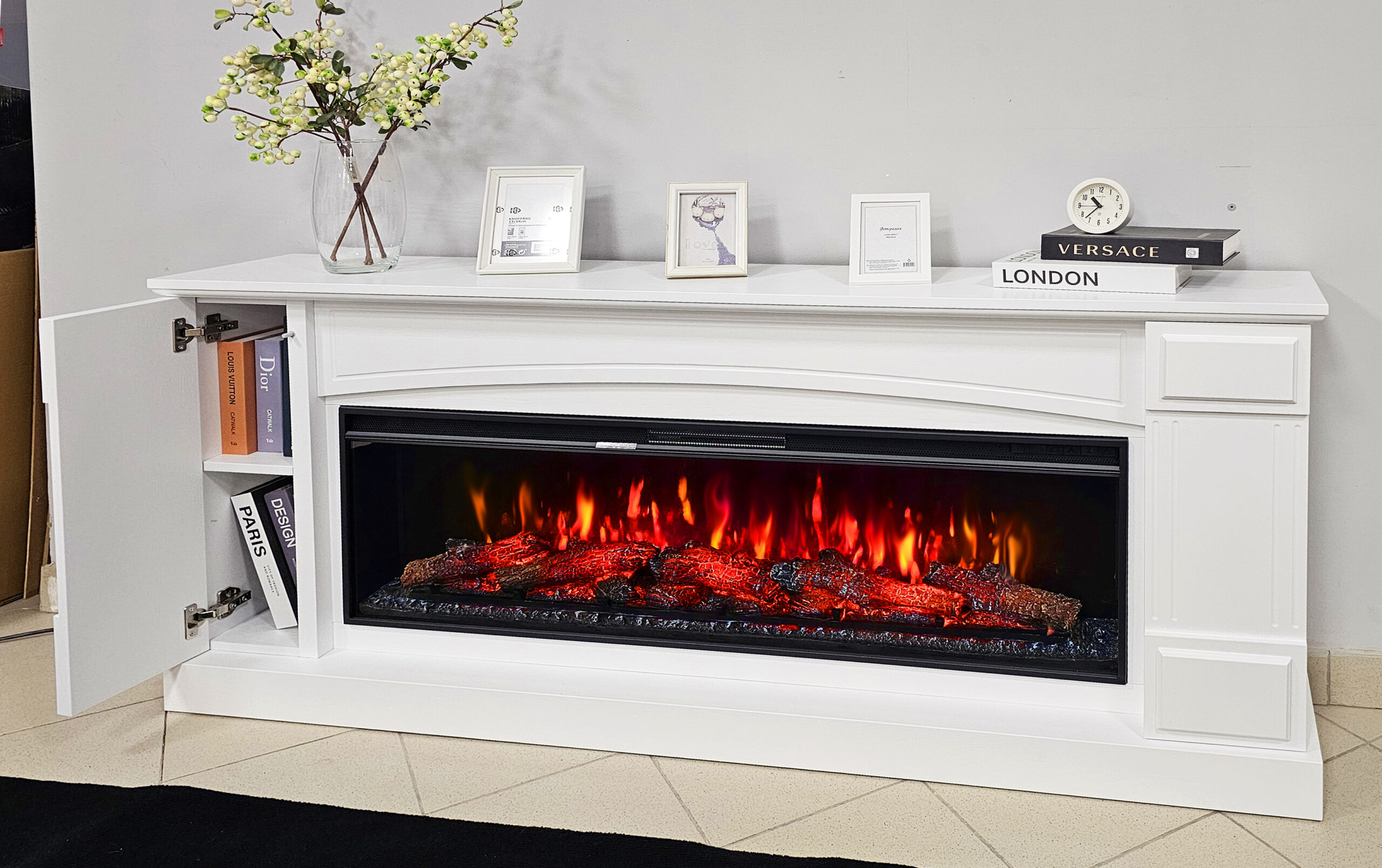 Бельгия. Камин-бар с дверками (белый дуб) очаги 50″ на выбор (дрова/кристаллы) Габариты (ШxВxГ) 1800x800x300 мм