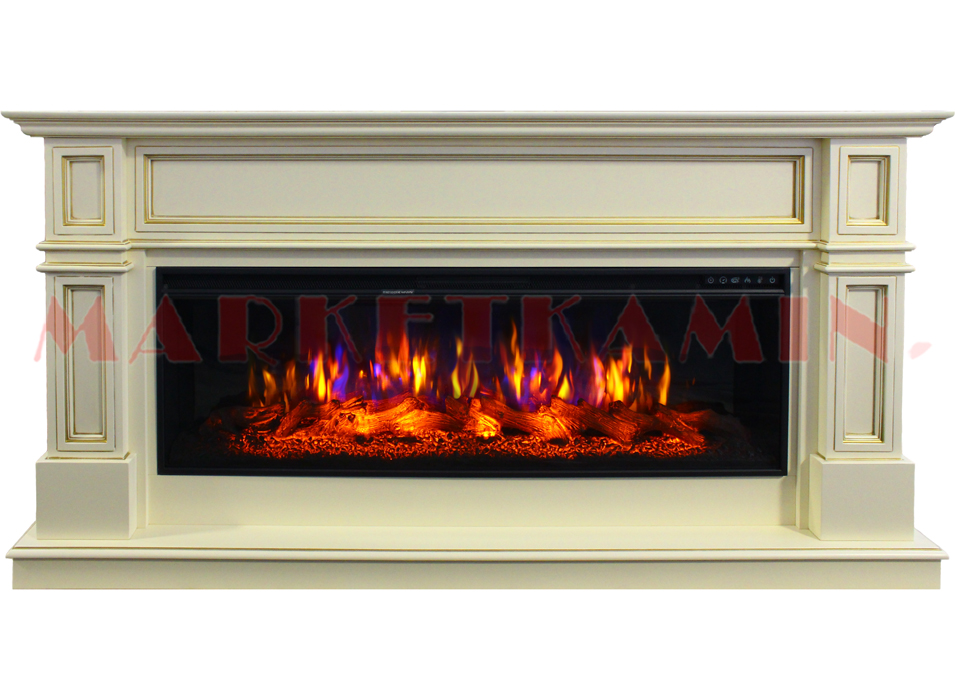 Бетховен (светло-бежевая эмаль с золотой патиной) Очаги 50″ на выбор (дрова/кристаллы/3D эффект живого пламени) Габариты (ШxВxГ)1900x900x400 мм