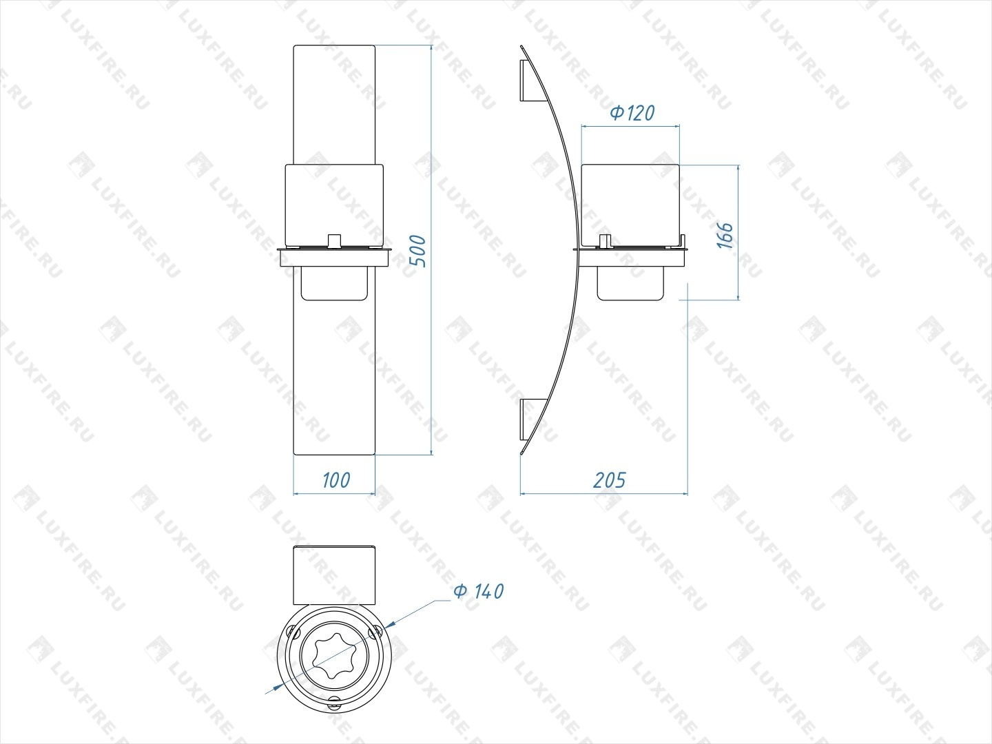 Представляет собой цельную металлическую конструкцию класса XS, создающую полузакрытое безопасное пространство для огня с топливным блоком Lux Fire D-85 XS ограниченную закаленным стеклом в котором горит живой огонь с углом обзора 180 градусов.