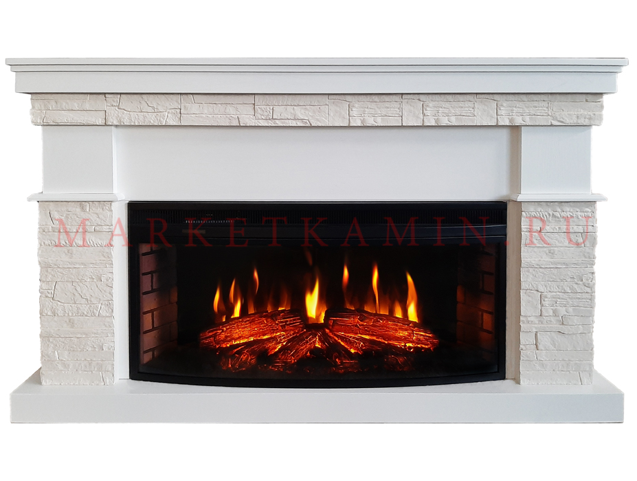 Бостон (белый дуб, светло-бежевый сланец) новый широкий LED-очаг. Цвет и отделка на выбор. Габариты (ШxВxГ): 1650х970х390 мм