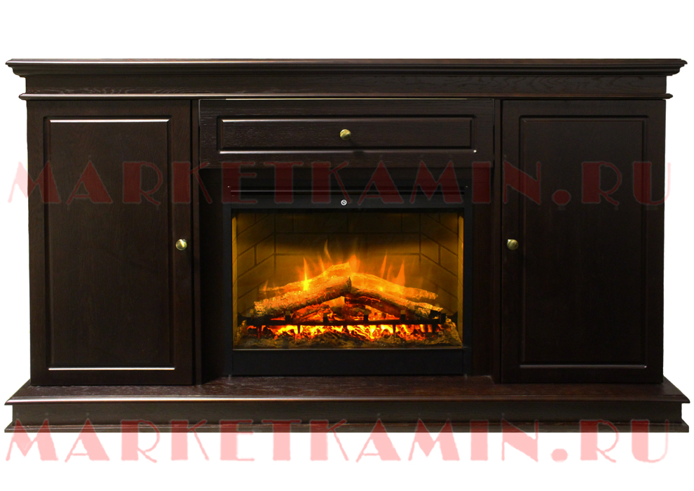 CHESTER LUXE (честер венге) камин-бар, тумба-ТВ с выдвижным ящиком сверху и боковыми дверками. Новые очаги на выбор. Габариты (ШxВxГ)1800x1050x450 мм