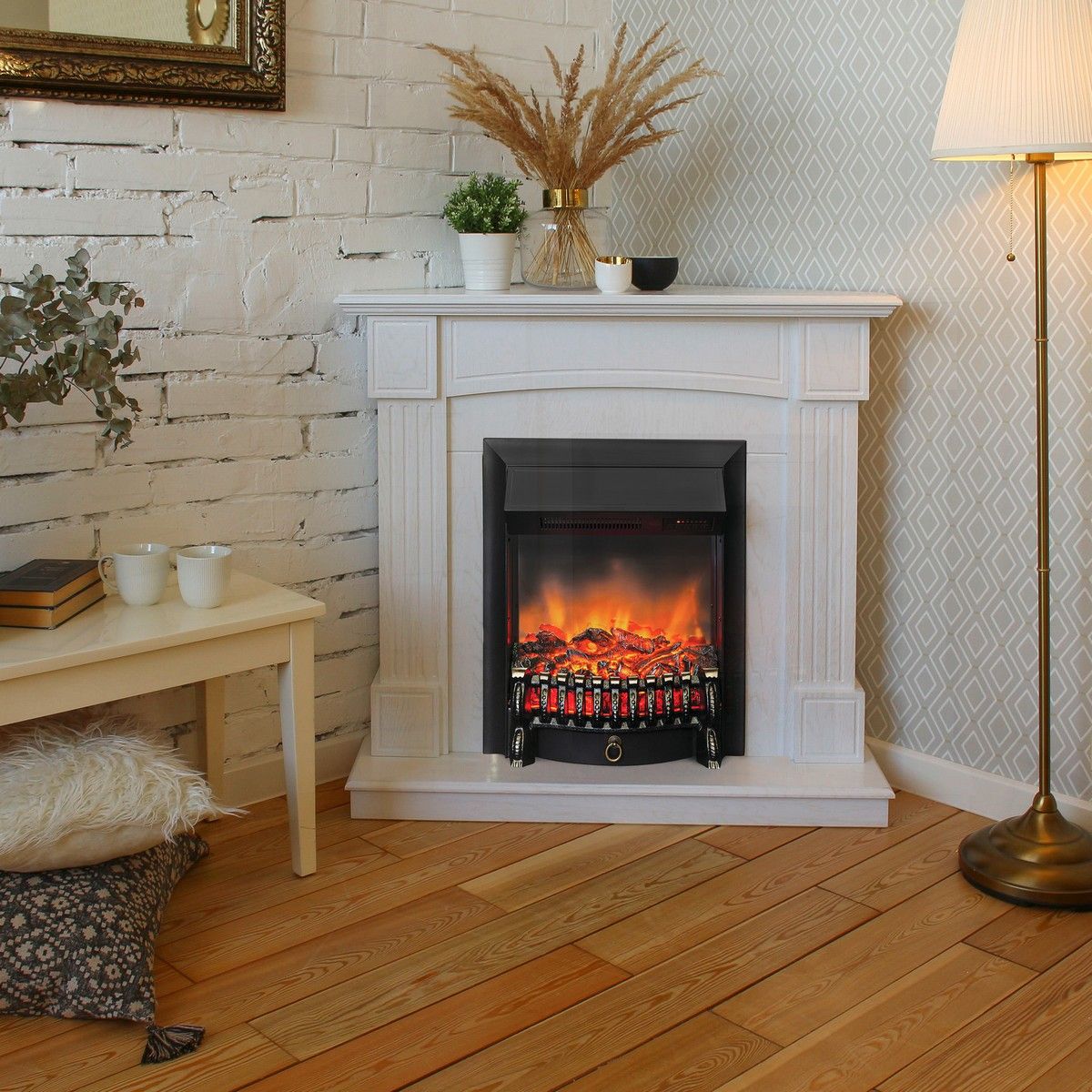 Электрокамин Andrea Corner WT с очагом Fobos Lux Black RC. Габариты (ШxВxГ) 98x97x30 см