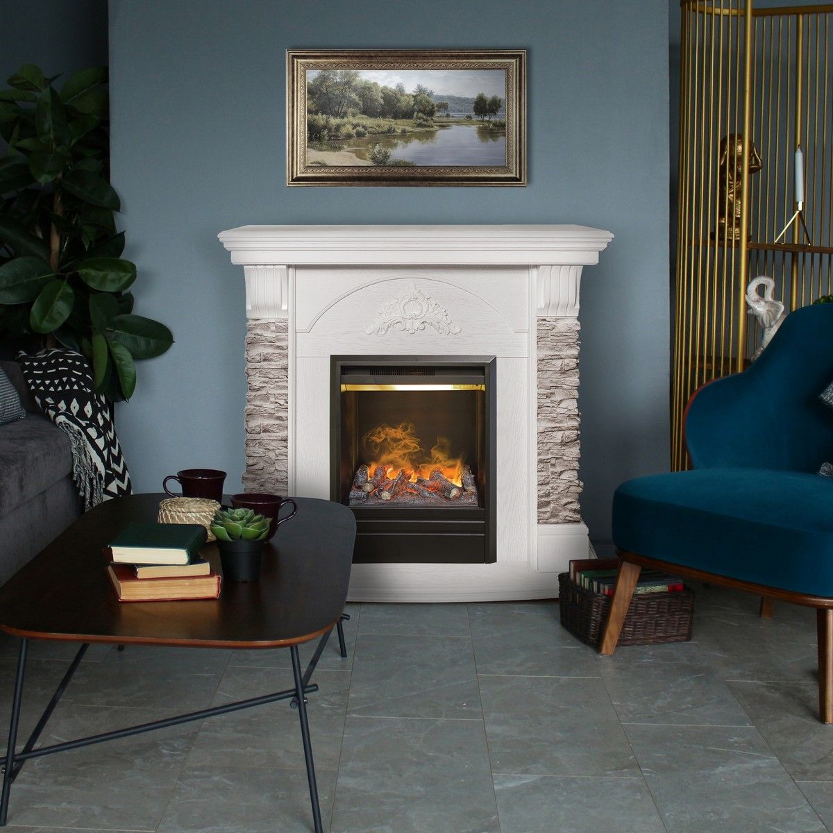 Электрический очаг с технологией имитации пламени «3D камины»Подходит для всех обрамлений со стандартным вырезом под электроочаг.