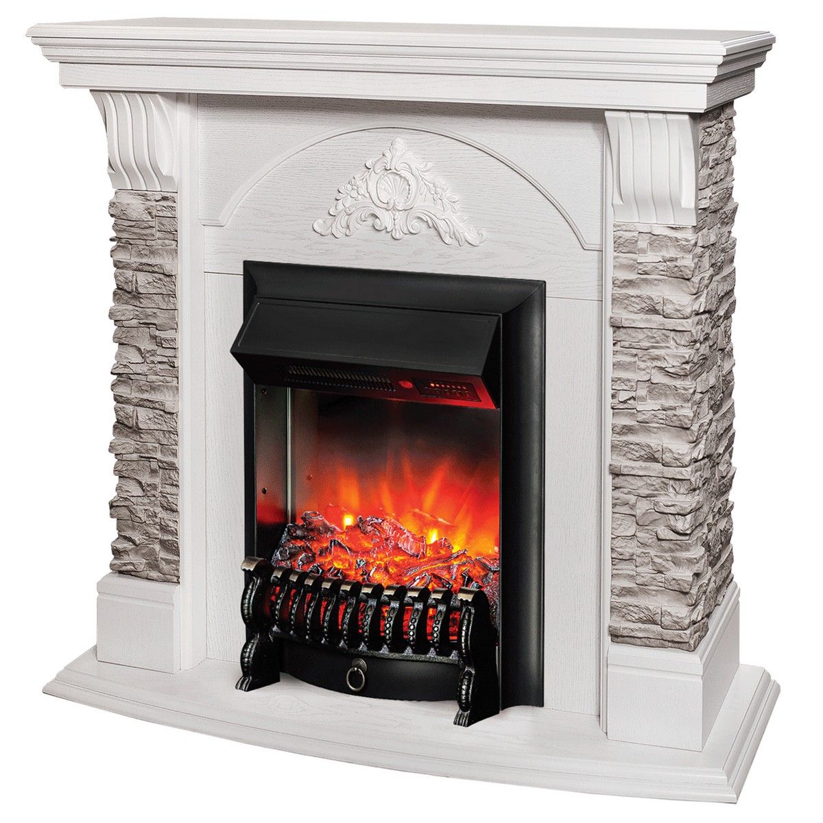 Электрокамин Athena GR WT с очагом Fobos Lux Black RC. Габариты (ШxВxГ) 98x97x30 см