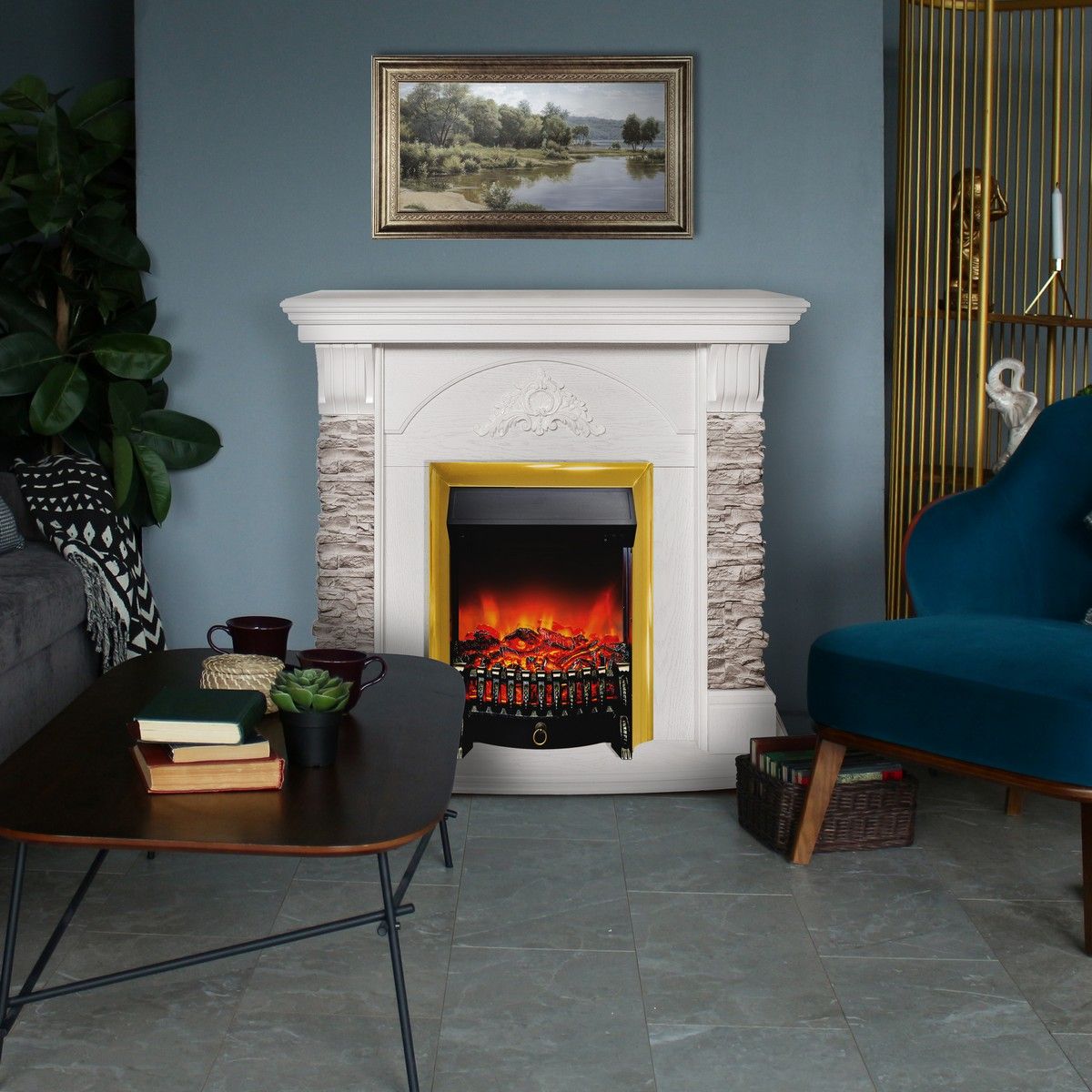 Электрокамин Athena GR WT с очагом Fobos Lux Brass