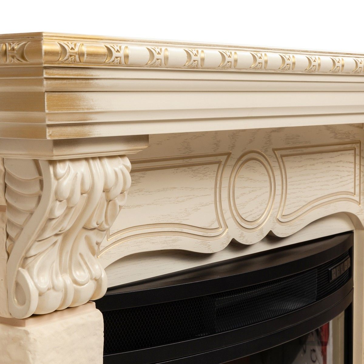 Электрический камин Bolero. Эффектное, и в тоже время не перегруженное деталями, обрамление в цвете дуб белый с золотой патиной, с очагом Firefield 25 SIR.