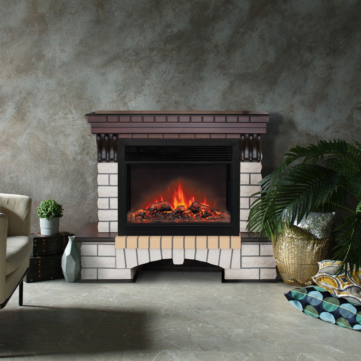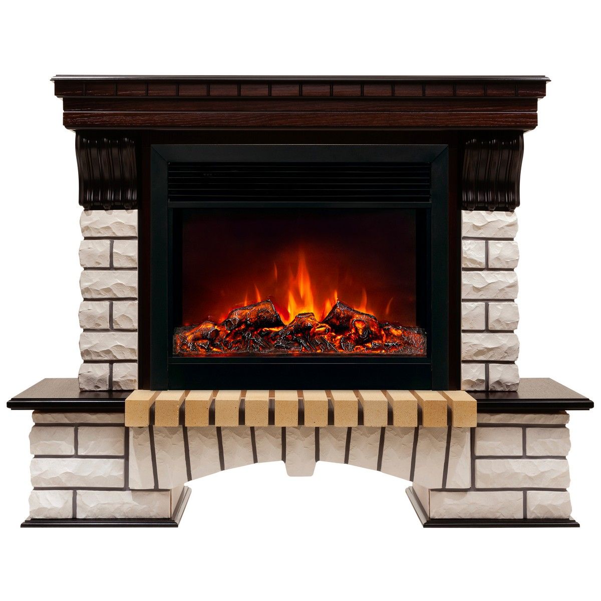 Портал в стиле «»кантри»». Изготовлен из искусственного камня и шпонированного МДФ. Камень белого цвета. Предназначен для популярных очагов 26 дюймов.