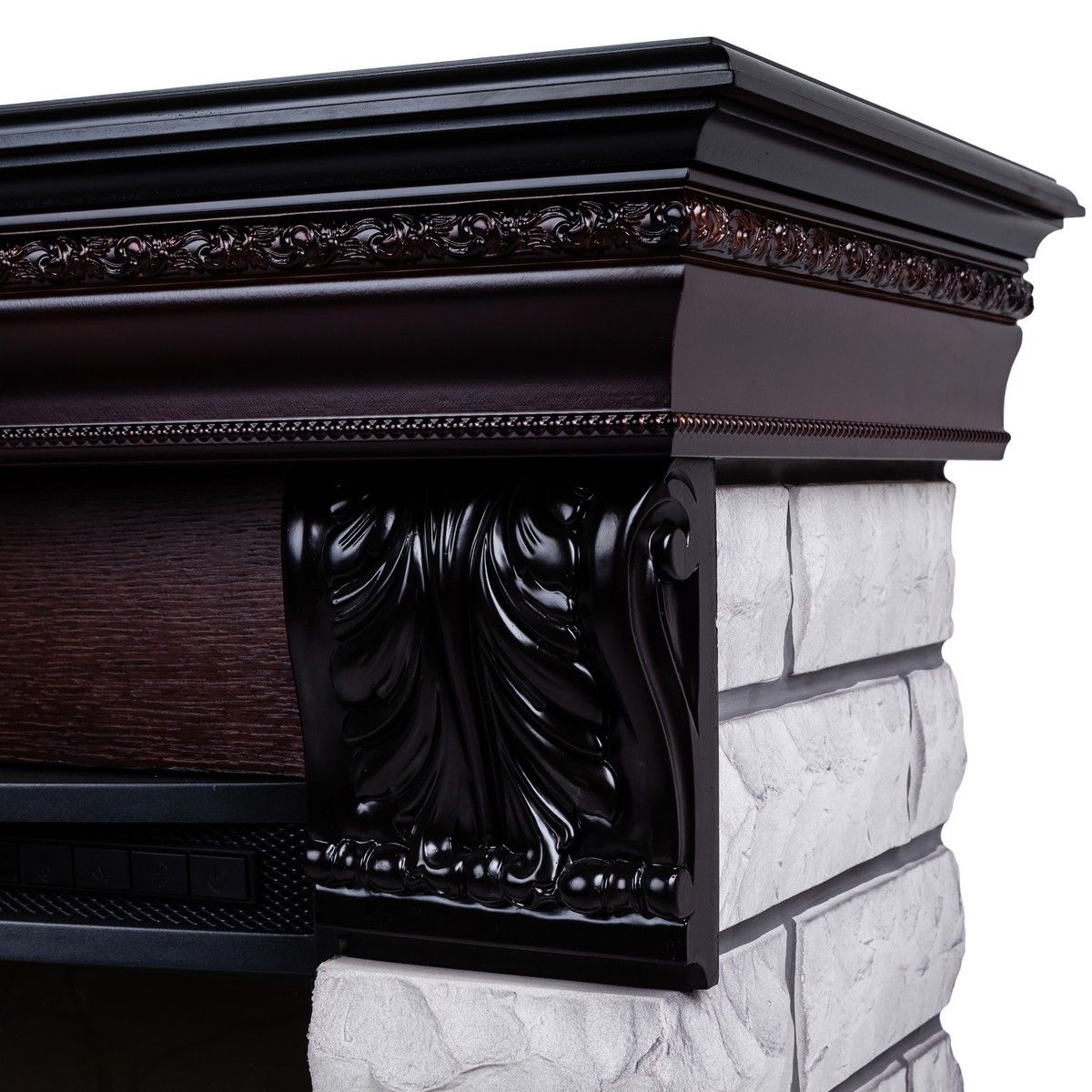 Портал в стиле «»кантри»». Изготовлен из искусственного камня и шпонированного МДФ. Камень серого цвета. Предназначен для очагов 25,5 дюймов.