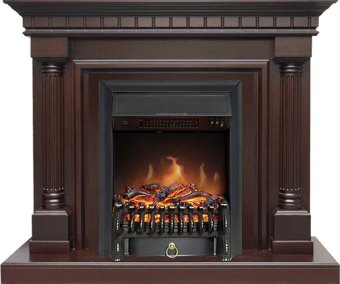 Электрокамин Dallas (Даллас) Тёмный дуб с очагом Fobos чёрная рамка. Размеры, мм В 980x Ш1140x Г350
