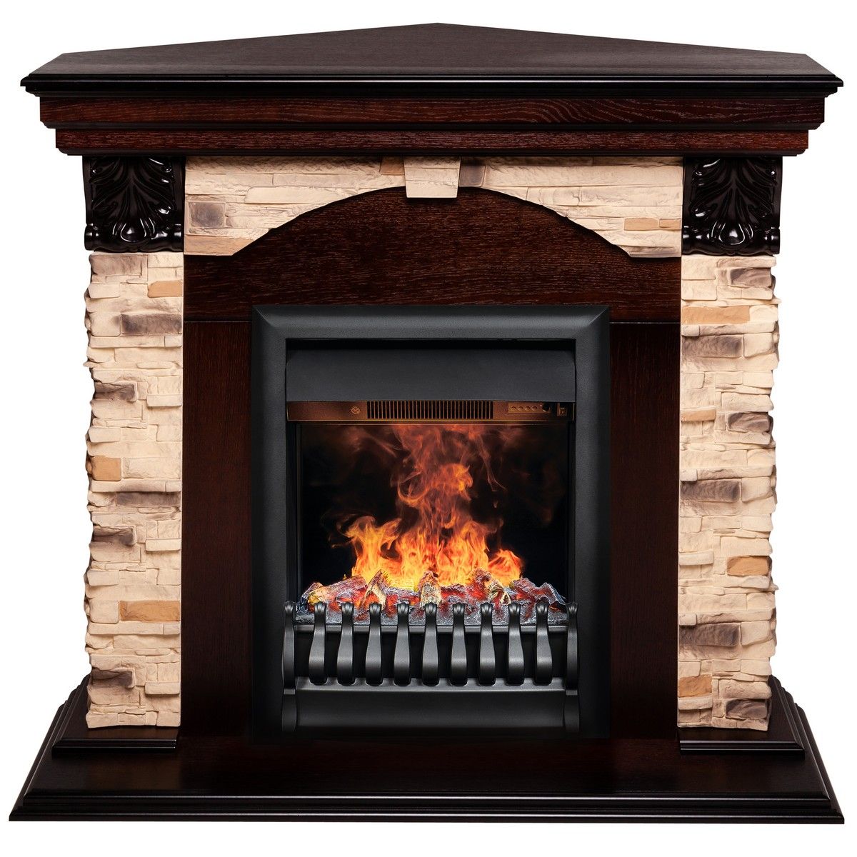 Электрокамин Dublin Corner Rock AO с очагом 3D Oregan. Габариты (ШxВxГ) 104x97x77 см