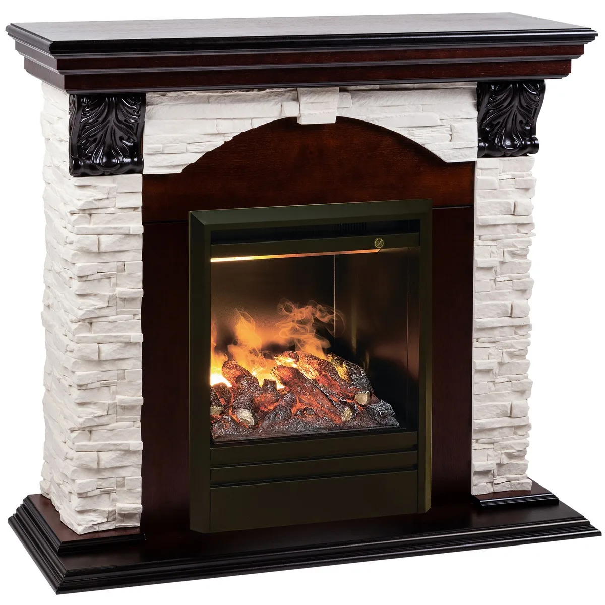 Электрокамин Dublin Lux AO (античный дуб/светло-бежевый сланец) с очагом 3D Olympic с эффектом живого пламени и увлажнением воздуха. Размер (В x Ш x Г), мм 970 x 1040 x 370