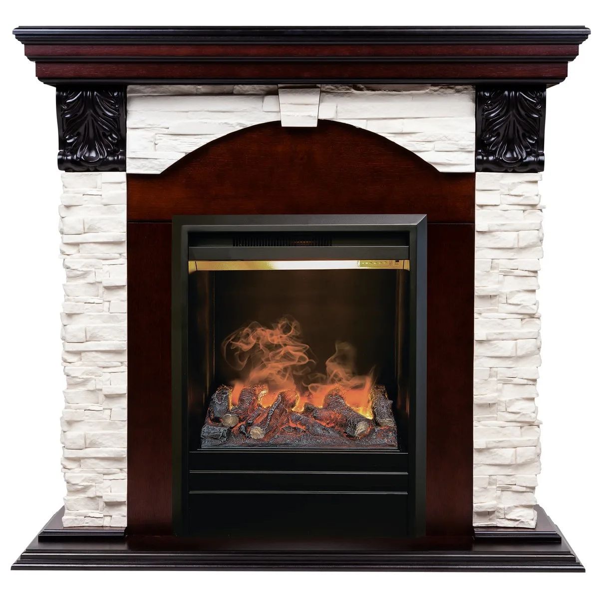 Комплект с очагом Олимпик 3D с эффектом живого пламени и дыма: Современный стиль очага с открытой топкой наполненной пылающими поленьями и головёшками. Густой эффектный дым, интенсивность которого можно регулировать. Работает на воде. Выполняет функцию увлажнителя воздуха. Есть функция 0богрева помещения площадью до 30 м2. Мощность 0,75/1,5 кВт. Пульт ДУ.