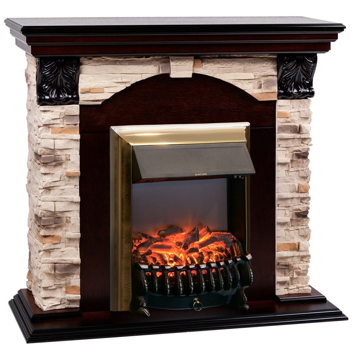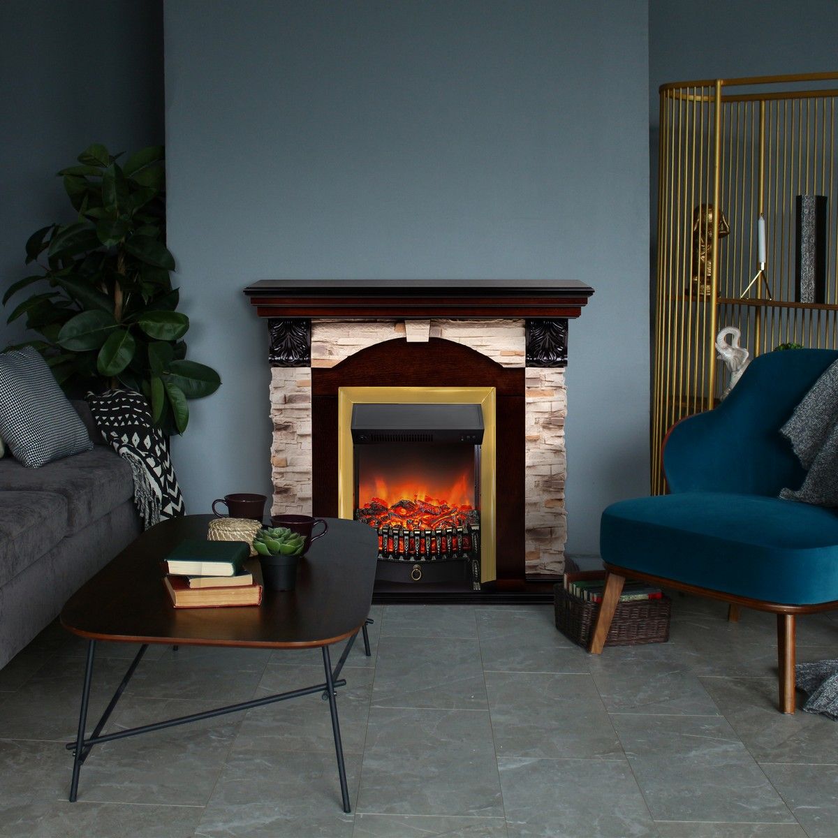 Электрокамин Dublin Rock AO с очагом Fobos Lux Brass