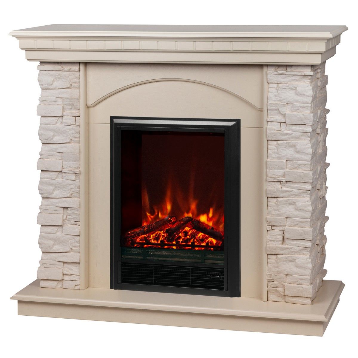 Электрический камин RealFlame Eugene — это обязательный предмет интерьера для вашей гостиной, кухни, спальни или прихожей его предназначением является украшение и декорация вашего дома или офисного помещения. Достигается это посредством имитации пламени на экране очага и конвекторного обогревателя встроенного в корпус. Двухуровневый тепловентилятор обогреет за полчаса любое помещение — спальню, кухню, его можно просто поставить на пол или встроить в каминное обрамление, в нишу или в мебель — есть датчик защиты от перегрева. Камин используют в любую погоду зимой, осенью или весной, в квартире или на даче. Летом можно не включать обогрев — проекционная технология пламени имитирующая настоящий огонь работает в независимом режиме. У электрического очага Eugene по мимо звуковой имитации потрескивания дров есть дополнительные особенности: Пульт ДУ, регулировка яркости пламени, таймер отключения. Камин достаточно универсален в выборе стиля и дизайна оформления помещения.