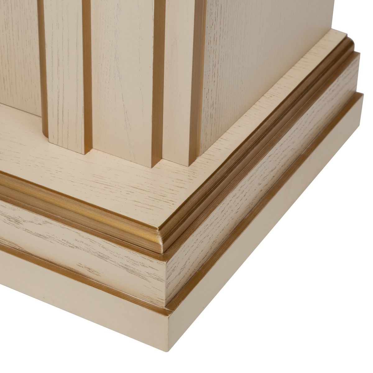 Выполнен в классическом стиле, изготовлен из высококачественного шпонированного МДФ в цвете беленый дуб WT-659 (с золотой патиной)