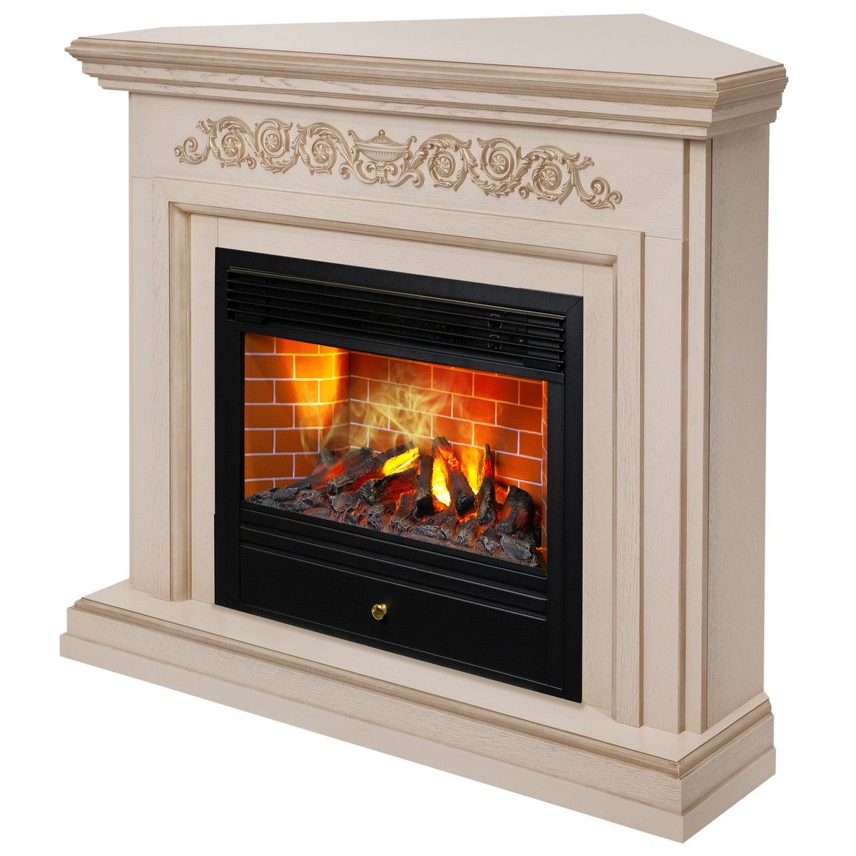 Электрокамин Leticia Corner 26 WT-619G с очагом 3D Novara. Габариты (ШxВxГ) 123x104x86 см