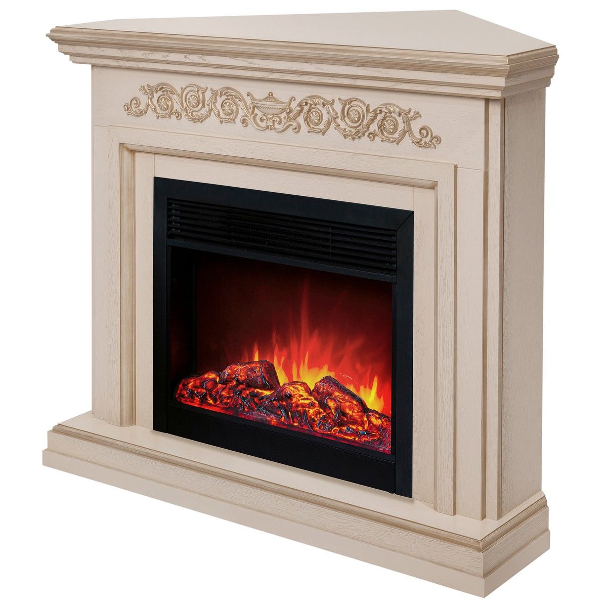 Электрокамин Leticia Corner 26 WT-619G с очагом Moonblaze Deluxe Black. Габариты (ШxВxГ) 123x104x86 см
