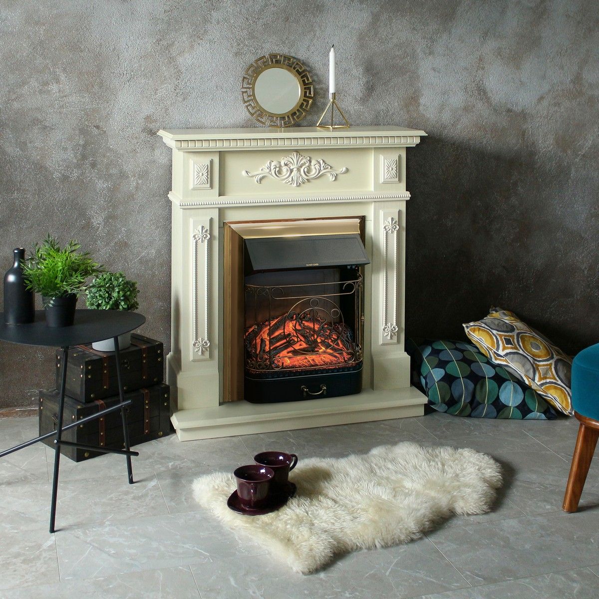 Электрокамин Lilian WT с очагом Majestic Lux Brass. Габариты (ШxВxГ) 89x97x36.5 см