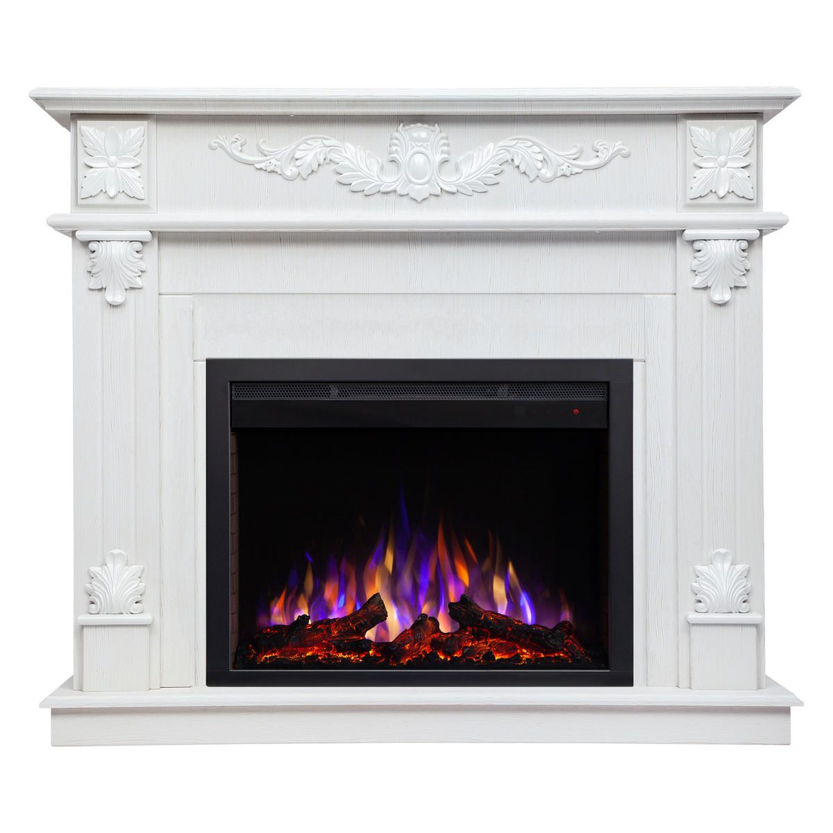 Основные функции электроочага Saphir 25 RealFlame – регулировка яркости и цвета пламени. При желании можно использовать подогрев и активировать звуковой эффект дров. Управляется с пульта дистанционного управления или с передней панели камина.