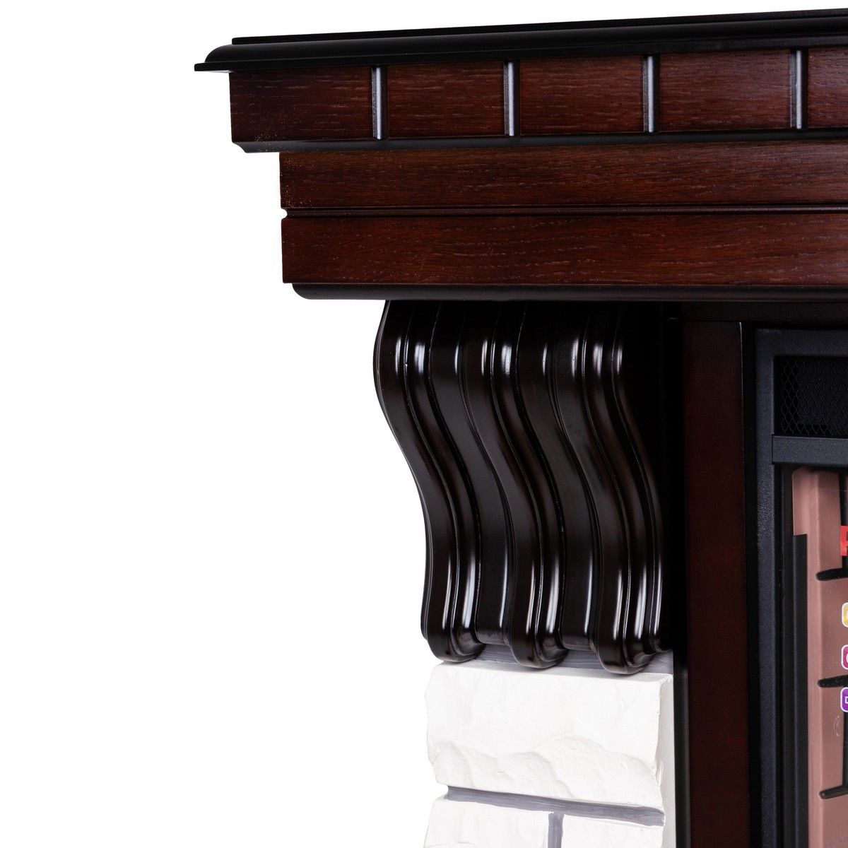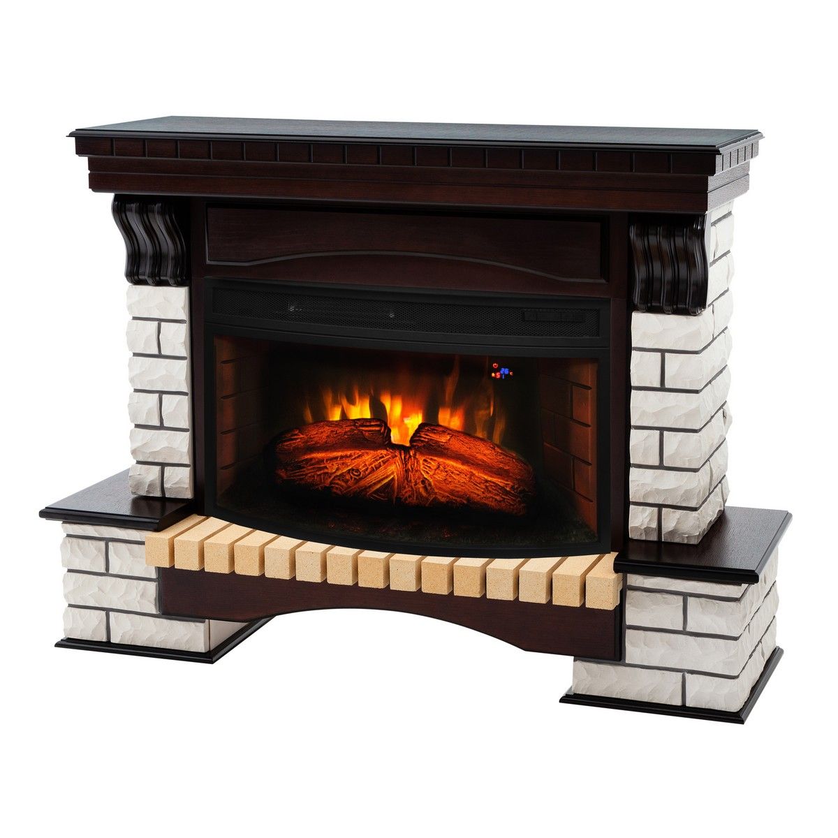 Инфракрасный нагреватель  с поддувом спрятан в верхней части очага. Все режимы выводятся (в течении 10 секунд) при установке на светящееся табло.