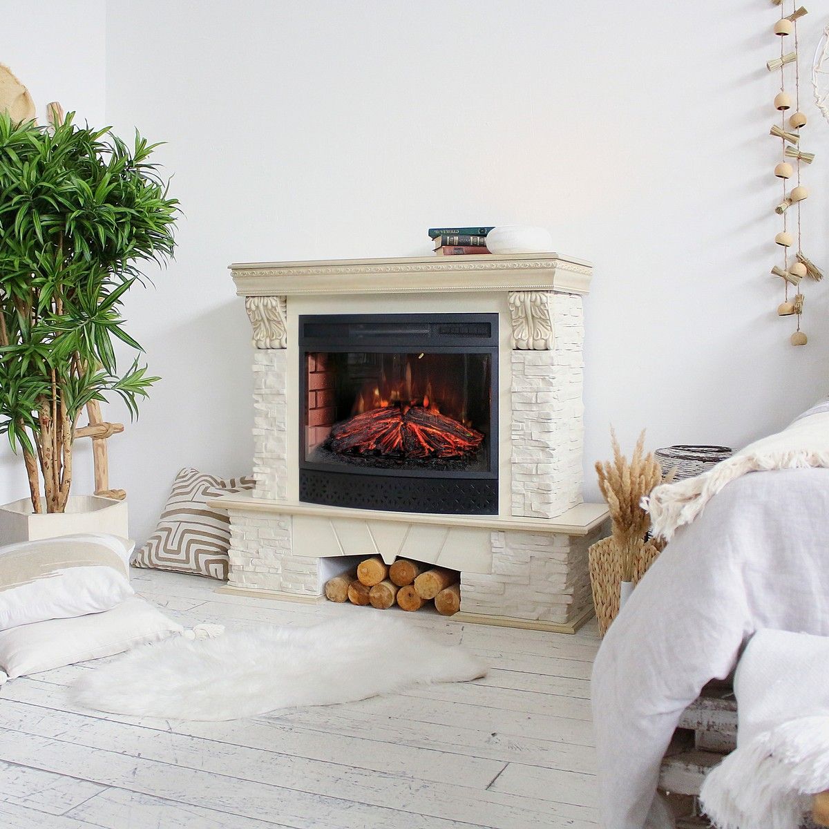 Электрокамин RealFlame Rockland Lux 25/25,5 WT c firefield 25, звуковая имитация горения. Габариты (ШxВxГ) 120×102.5×41.2 см