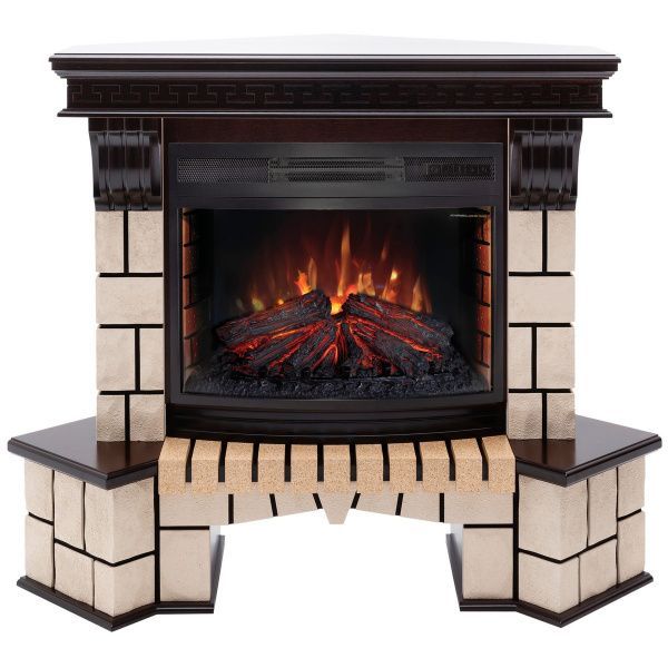 Угловой портал в стиле «кантри». Изготовлен из искусственного камня и шпонированного МДФ. Камень белого цвета. Предназначен для очагов 25,5 дюймов.