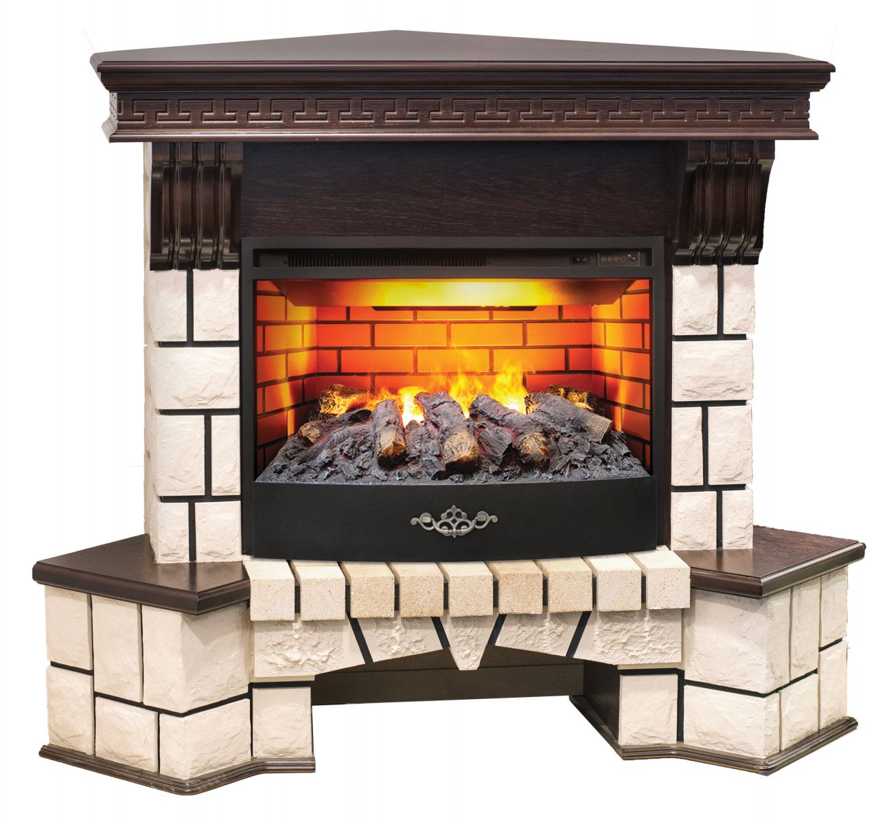 Угловой портал в стиле «кантри». Изготовлен из искусственного камня и шпонированного МДФ. Камень белого цвета. Предназначен для очагов 25,5 дюймов.