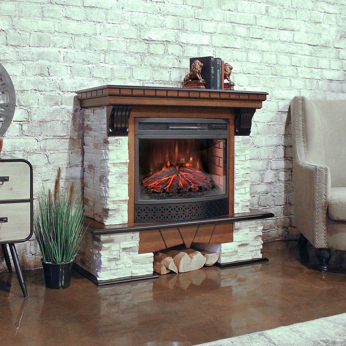 Портал выполнен из высококачественного шпонированного МДФ и искусственного камня. Подходит для очагов 25 дюймов.