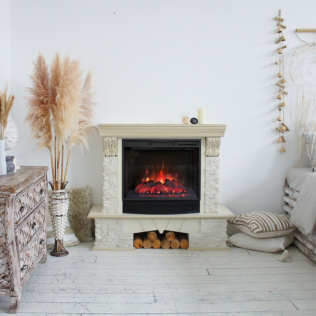 Портал выполнен из высококачественного шпонированного МДФ с патиной и искусственного камня. Подходит для очагов 25 дюймов.