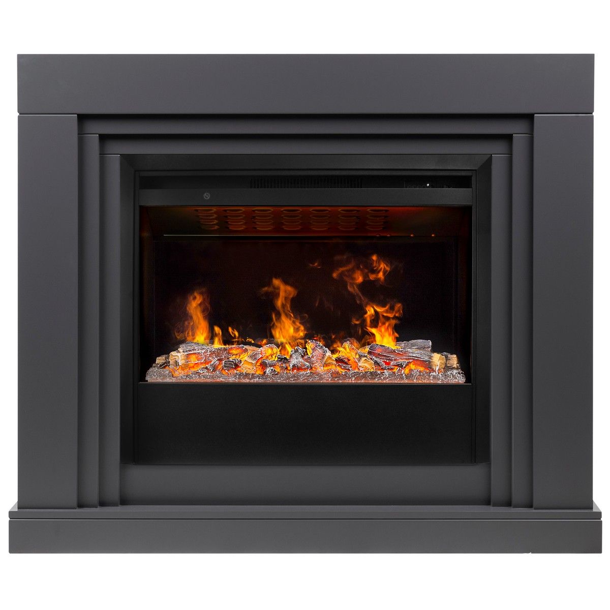 Обновленный очаг 3D нового поколения гарантирует абсолютно реалистичный эффект пламени с новым улучшенным парогенератором. Звуковой эффект горения пламени и потрескивания дров в очаге, создает неповторимую атмосферу. Одни из самых главных особенностей: внутреннее зеркальное стекло для визуального увеличения эффекта пламени.