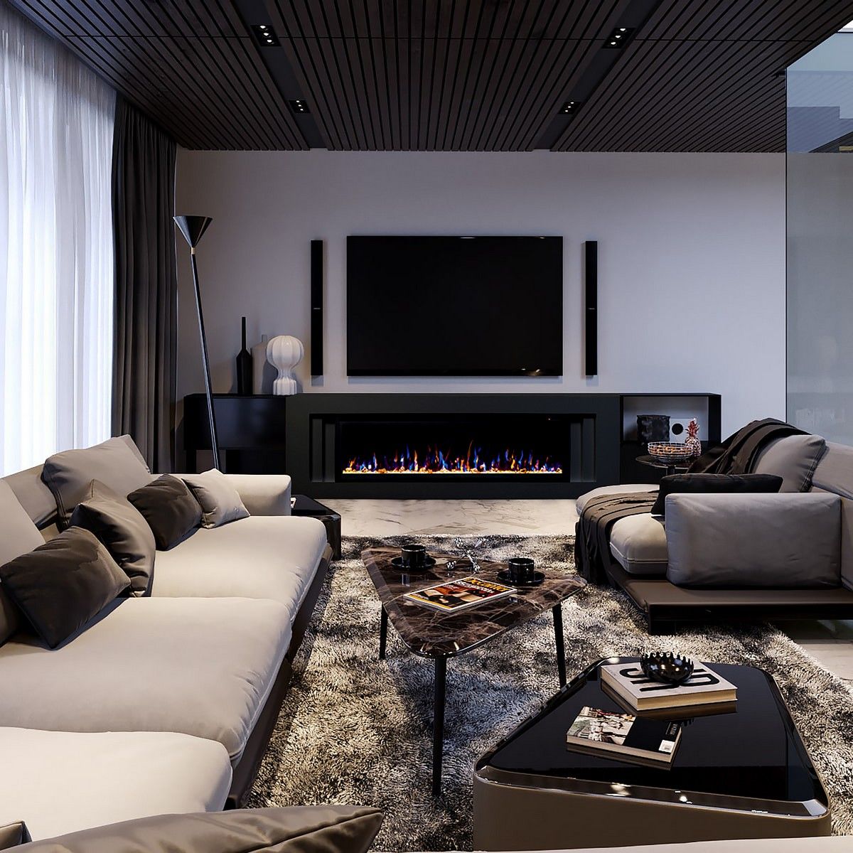 Электрокамин Stockholm 60/MNH BLM с очагом Saphir 60. Габариты (ШxВxГ) 198×65.5×23.2 см