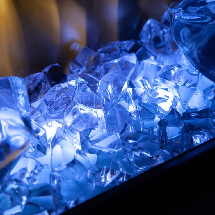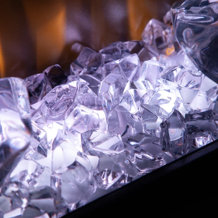 В комплекте два варианта декоративного топлива: традиционные пылающие поленья и современные кристаллы.