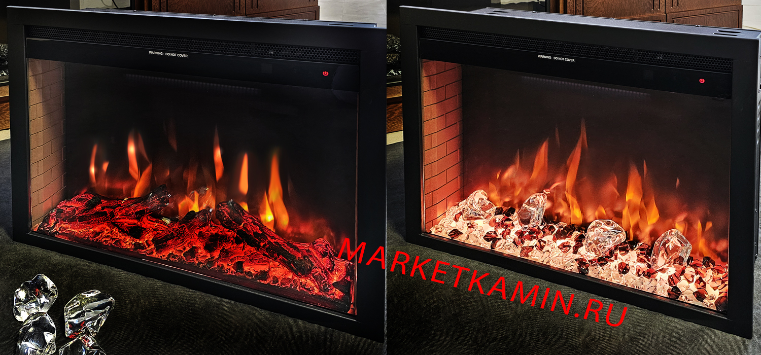 Электроочаг для встройки 2 в 1 (дрова/кристаллы) Saphir 25,5 дюйма (Сапфир) Габариты ШхВхГ: 675x525x195 мм