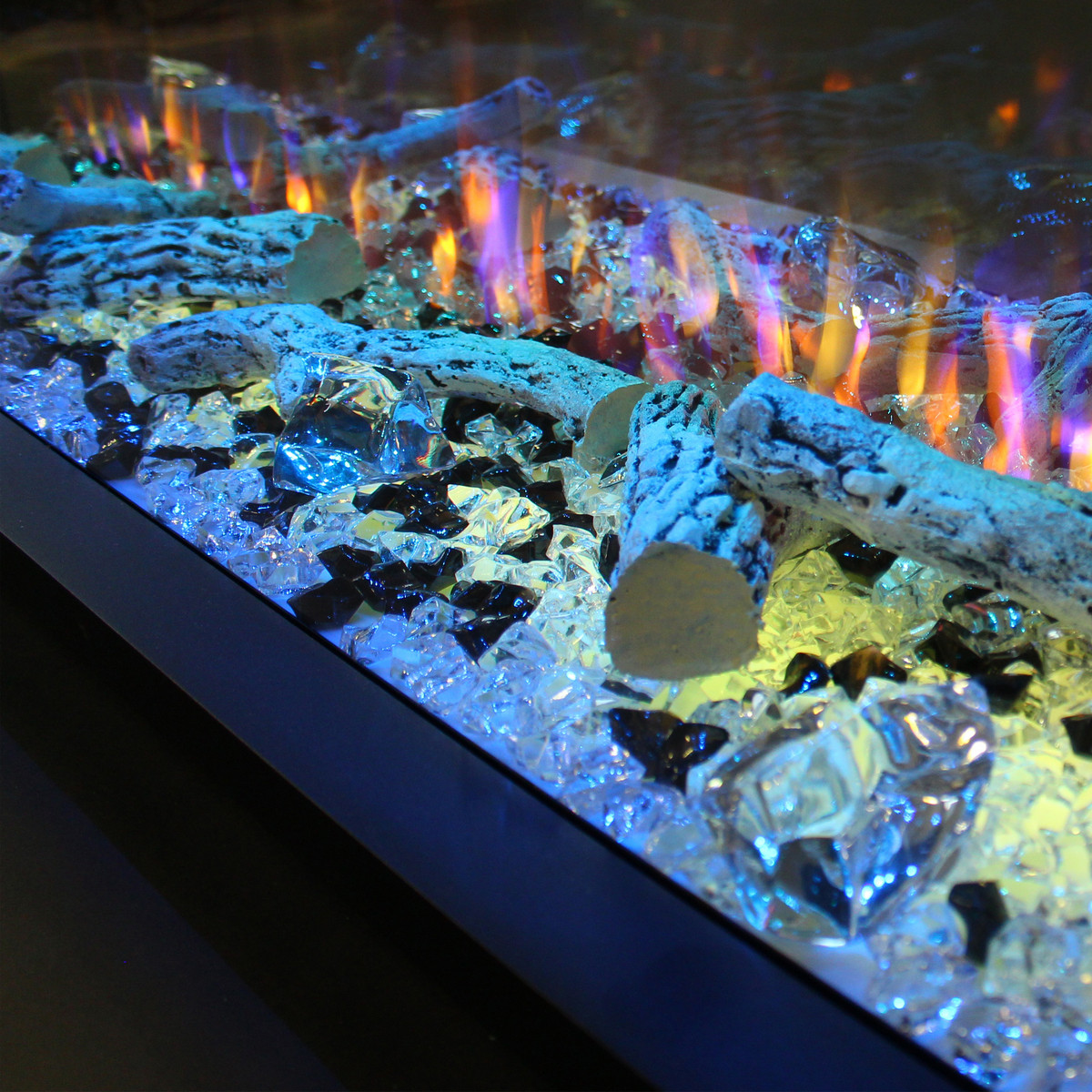 Используемая в камине светодиодная технология гарантирует низкое потребление электроэнергии. Управление камином осуществляется с помощью сенсорной панели или с пульта ду. Электрический камин Onyx имеет два уровня обогрева: высокий 1500 Вт и экономичный 750 Вт. Присутствует защита от перегрева. Электрокамин безопасен для детей и животных, так как стекло камина не нагревается. Для украшения электрокамина используюся: муляж дров белого цвета, небольшие кристаллы (прозрачные, черные) и крупные кристаллы.