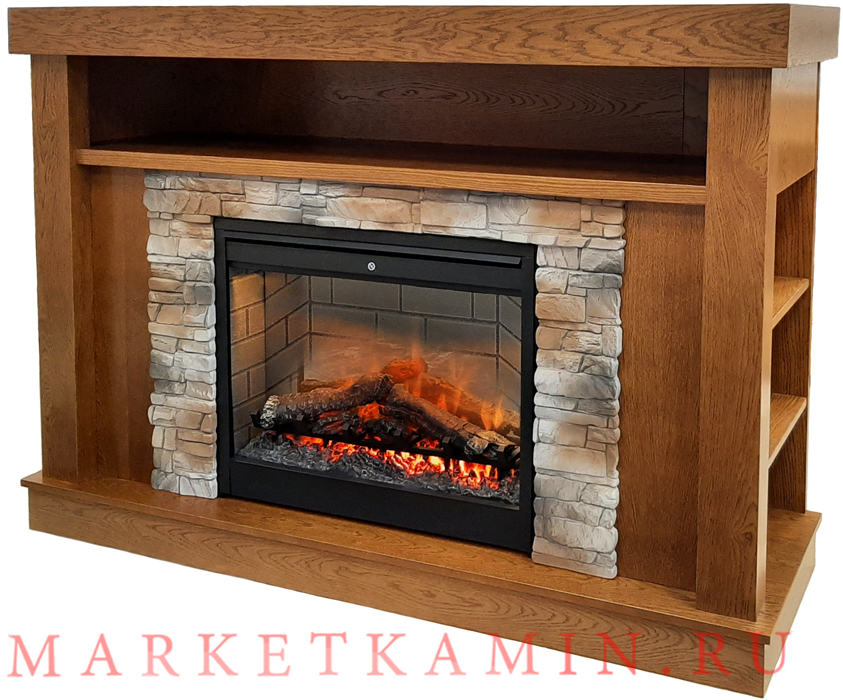 Элеон с открытыми полками (Орех с тёмной патиной) Цвет дерева и камня на выбор. Очаги на выбор (дрова/кристаллы/3D/био) Габариты (ШxВxГ)1600x1150x470 мм
