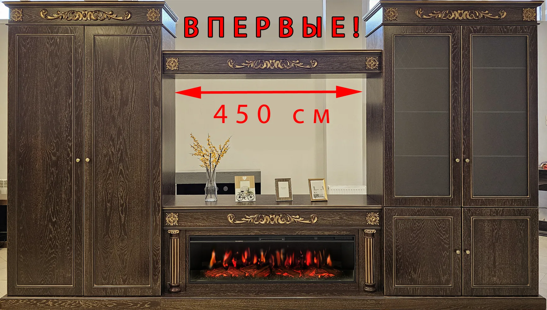 Общие габариты гарнитура, камина со стоящими рядом шкафами Габариты (ШxВxГ)4500x2600x600 мм. Высота центральной части с камином 850 мм. Длина центральной части с камином 1850 мм