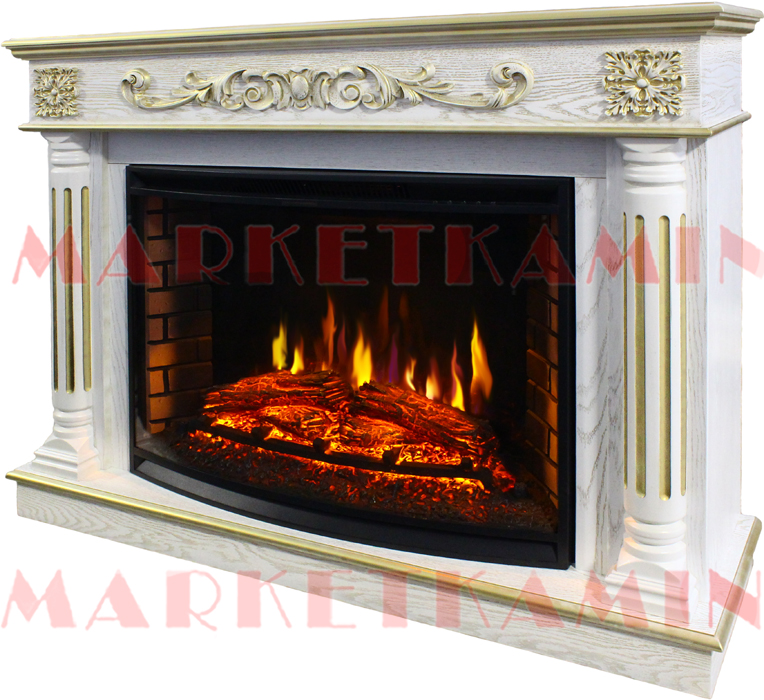 ELIZABETH (Элизабет белый дуб с золотой патиной) очаги на выбор (LED/3D) Цвет на выбор. Габариты (ШxВxГ)1300х1050х400 мм