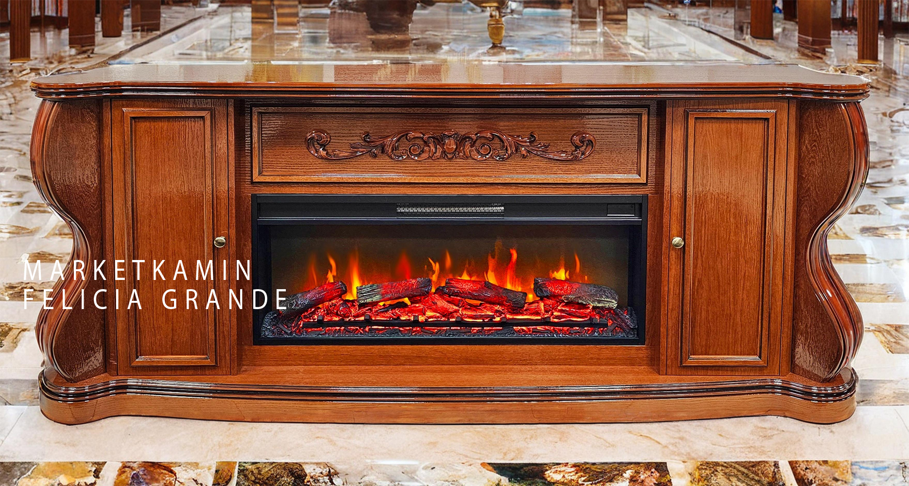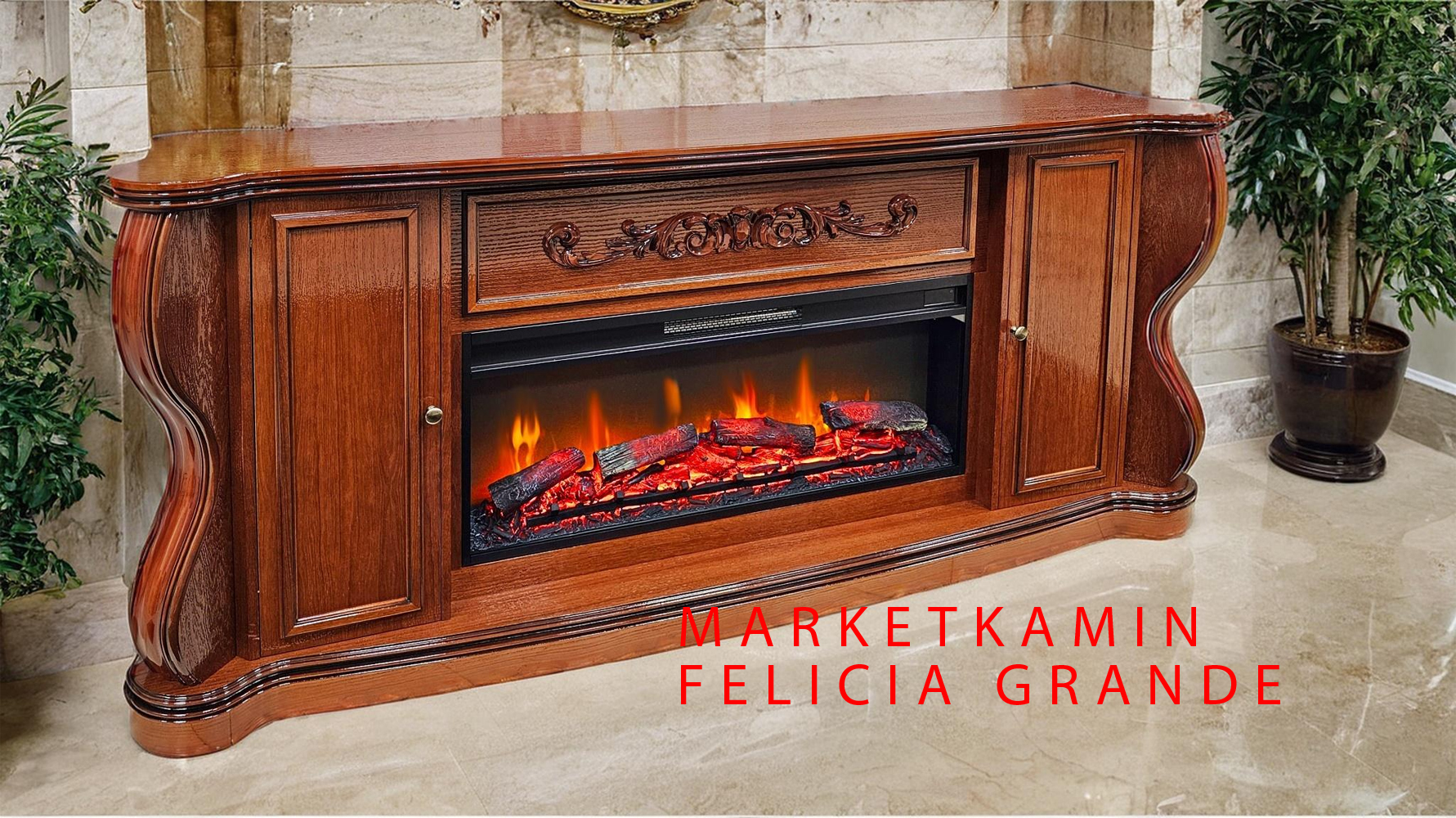 Felicia Grande (Фелиция) камин-бар с дверками (итальянский орех + глянцевый лак) Цвет на выбор. Габариты (ШxВxГ) 2200x950x450
