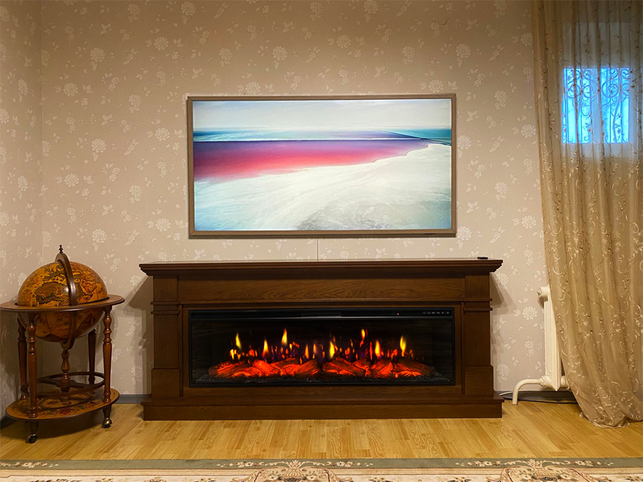 Грейсон (орех с тёмной патиной) широкие очаги 60 дюймов на выбор (дрова/кристаллы) Цвет на выбор. Габариты (ШxВxГ)1900x830x300 мм