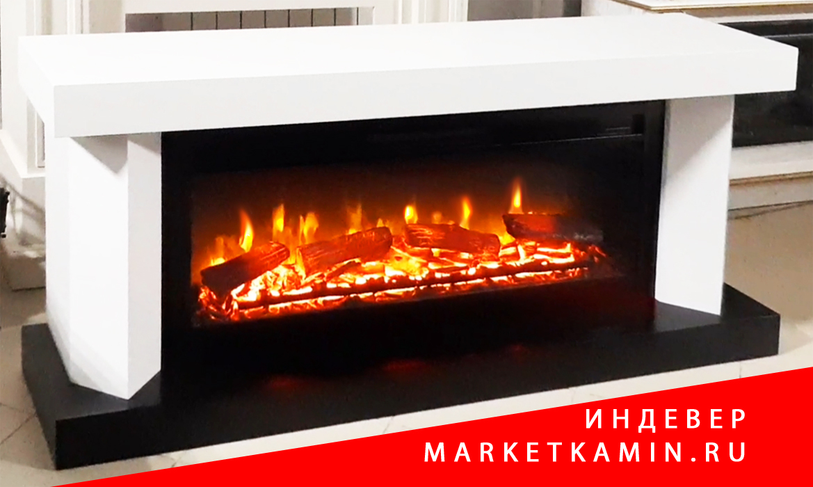 INDEVER (Индевер 165 белая/чёрная эмаль) Новые очаги на выбор (дрова, кристаллы, паровые 3D) Габариты (ШxВxГ): 1650х750х450 мм