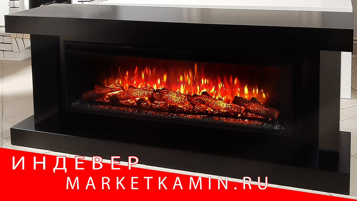 INDEVER (Индевер 180 чёрная эмаль) Очаги 50″ на выбор (дрова/кристаллы/3D эффект живого пламени) Габариты (ШxВxГ): 1800х650х450 мм
