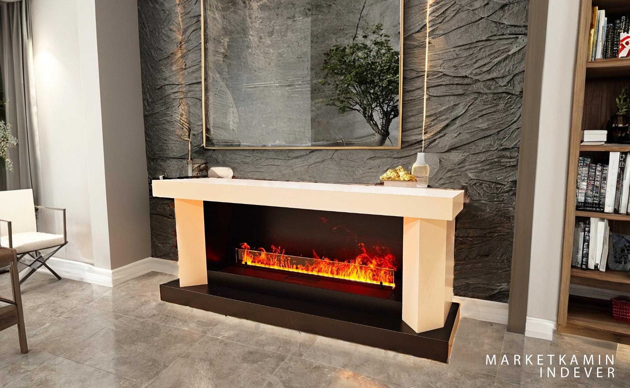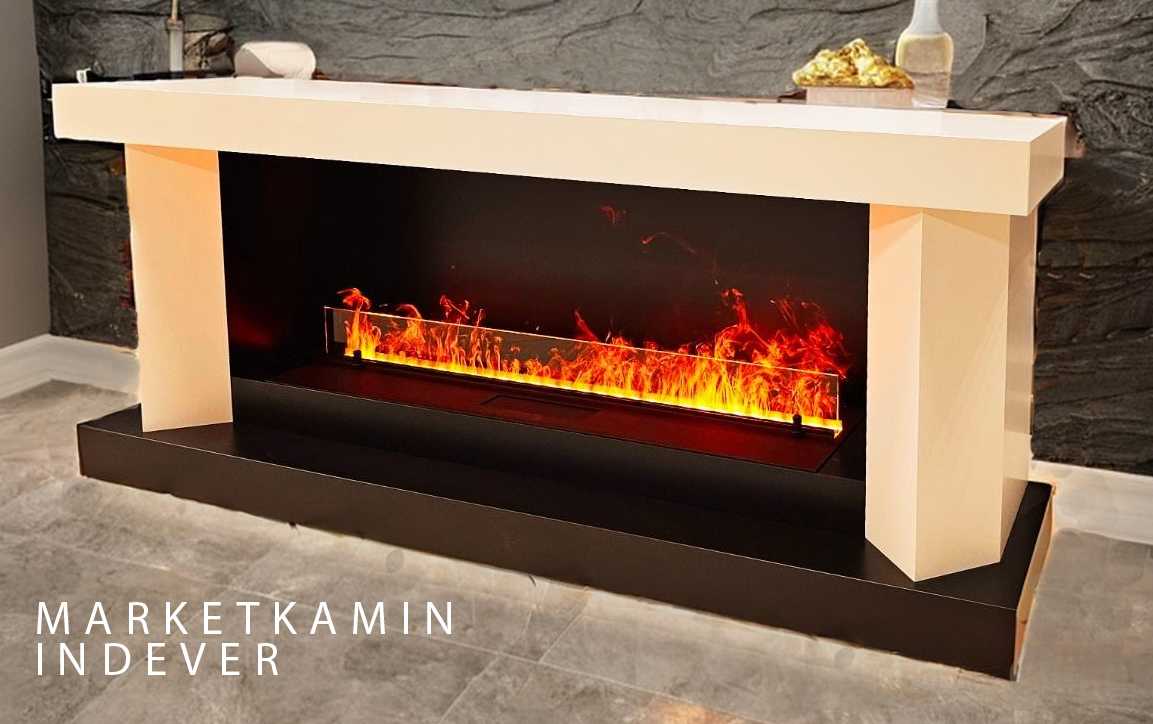 INDEVER 3D (Индевер кремовая/чёрная эмаль) Открытые очаги 3D эффект живого пламени и увлажнение воздуха (варианты в описании) Габариты (ШxВxГ): 1800х750х450 мм
