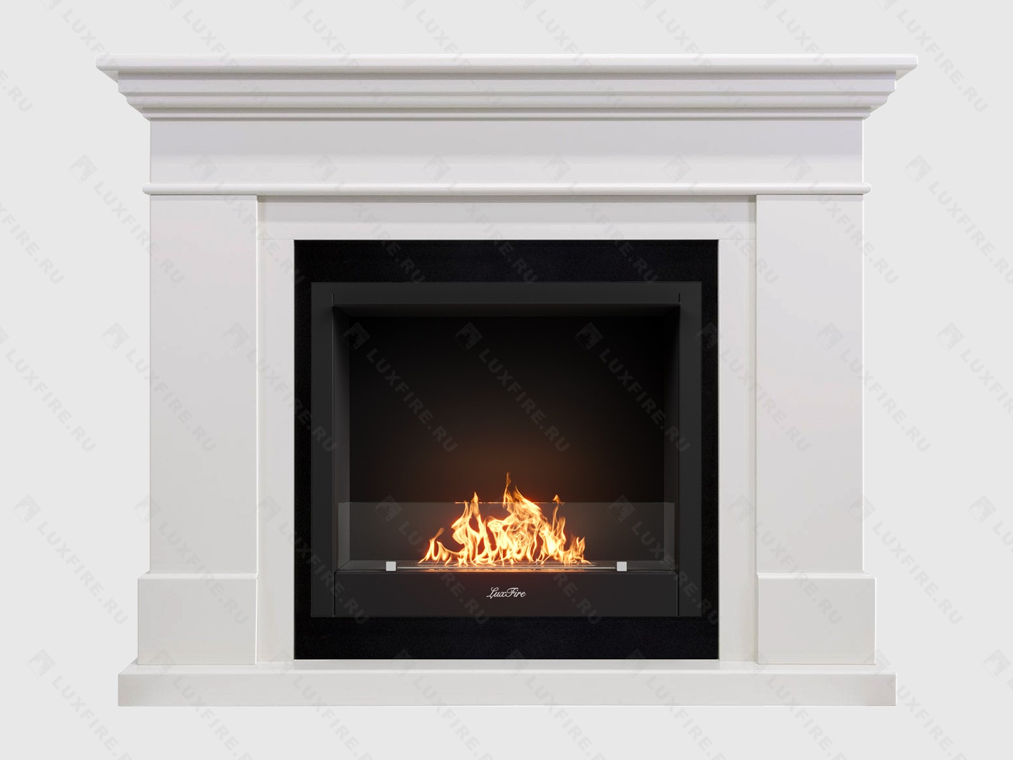 Каминокомплект California — Белый с с биокамином Lux Fire «Фаер Бокс 1-26». Размеры (ВхШхГ; мм)1005 × 1280 × 380 мм