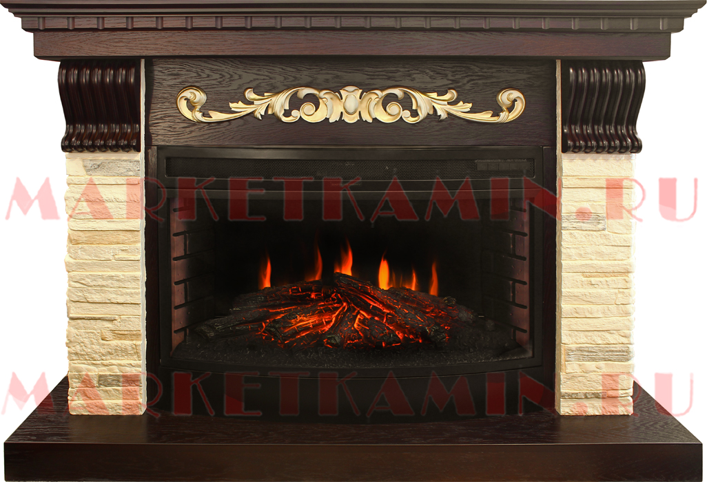 Леонардо (темный дуб с золотом, песочный сланец) очаги на выбор (электро/паровые 3D) Цвет и отделка на выбор. Габариты (ШxВxГ): 1400х1000х430 мм