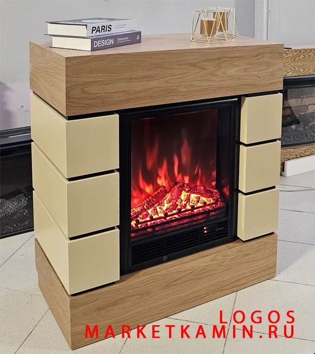 Логос 80 (классический дуб/беж эмаль) очаги на выбор (электро/паровые 3D) цвет на выбор. Габариты (ШxВxГ) 800x1000x300 мм