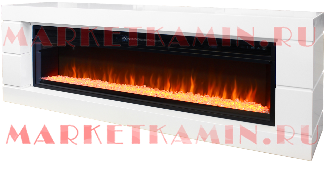 Логос (белый) широкие очаги 60″ на выбор (дрова/кристаллы/3D) Цвет на выбор. Габариты (ШxВxГ): 1800х650х300 мм