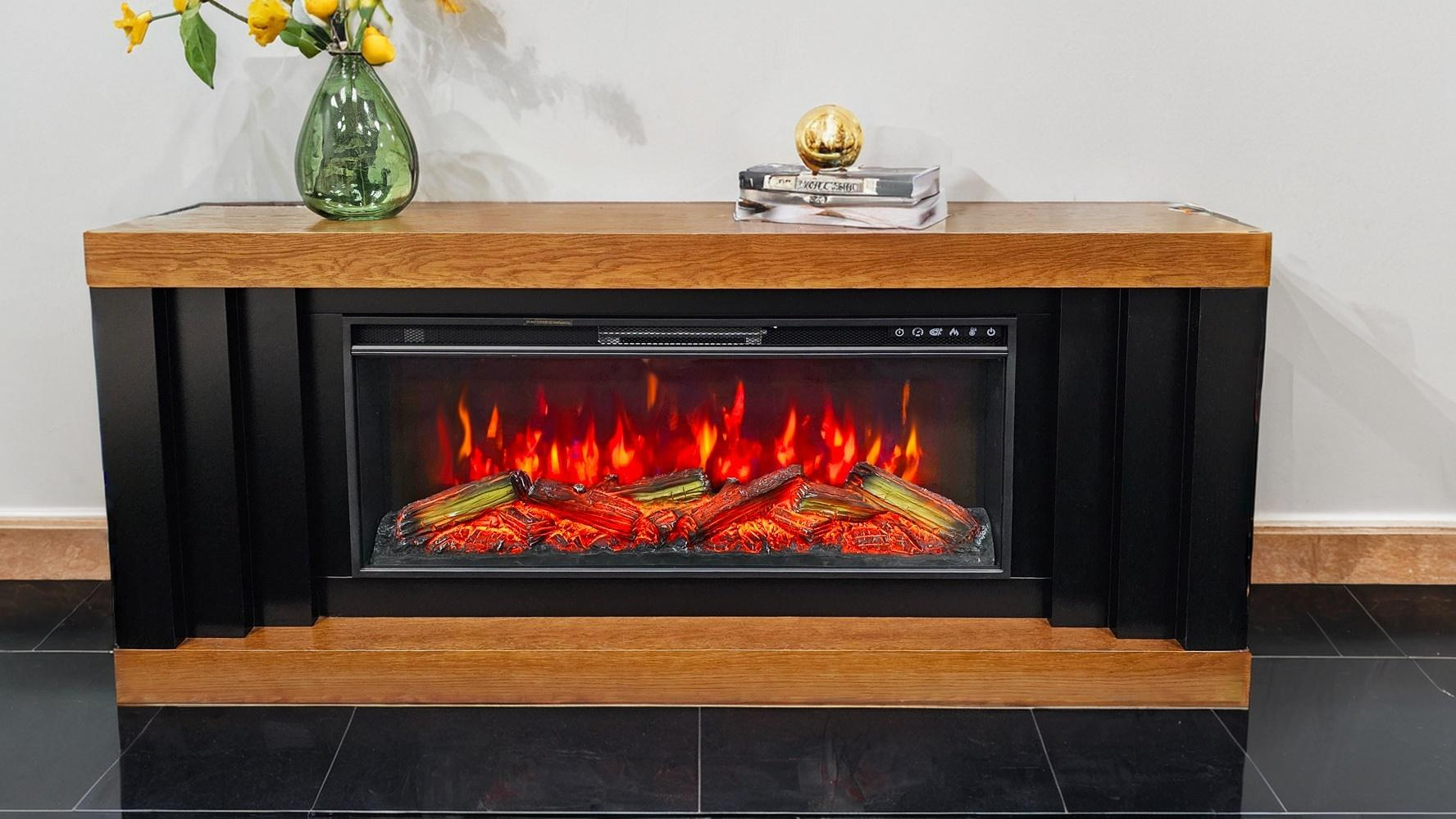Потрясающий эффект пламени. Муляж дров, выполненный по слепку настоящих дров, расположенный за прямым стеклом. Регулировка яркости, цвета и скорости пламени. Новый кварцевый обогреватель с функцией «климат-контроль» спрятан в верхней части очага, обеспечивает обогрев в холодную погоду. Мощность обогрева 1.8 кВт. Звук потрескивающих поленьев. Пульт ДУ.