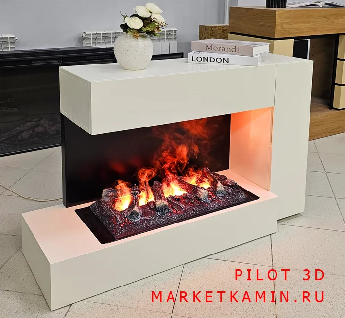 Пайлот 1100. Камин-бар с дверкой и выдвижным ящиком (эмаль RAL 1013) Открытый очаг 3D с живым пламенем (варианты в описании) Габариты (ШxВxГ): 1100х900х400